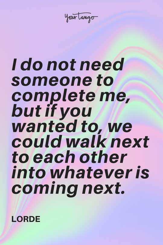 "I do not need someone to complete me, but if you wanted to, we could walk next to each other into whatever is coming next." - Lorde