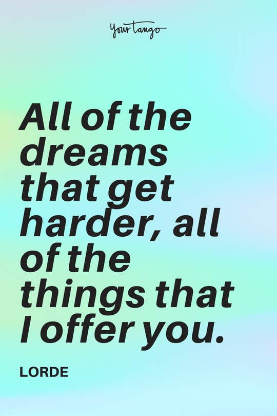 "All of the dreams that get harder, all of the things that I offer you." -Lorde