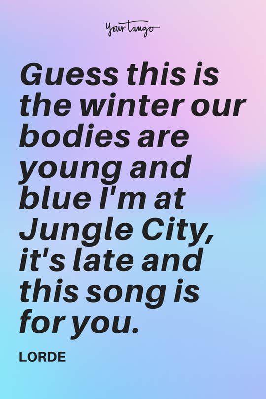 "Guess this is the winter our bodies are young and blue I'm at Jungle City, it's late and this song is for you." -Lorde