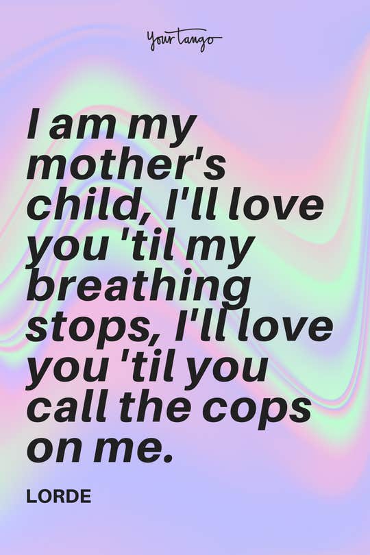 "I am my mother's child, I'll love you 'til my breathing stops, I'll love you 'til you call the cops on me." -Lorde
