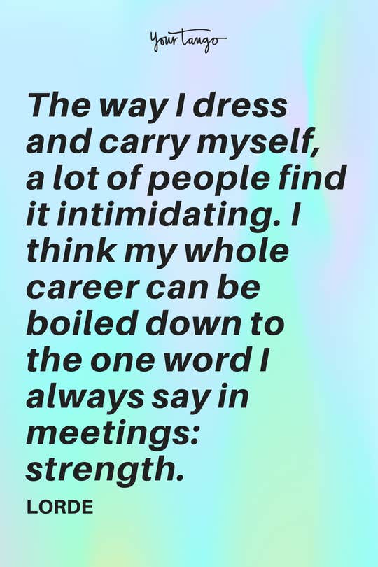 "The way I dress and carry myself, a lot of people find it intimidating. I think my whole career can be boiled down to the one word I always say in meetings: strength." -Lorde