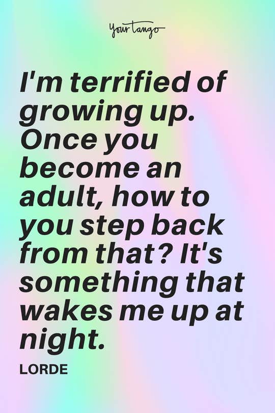 "I'm terrified of growing up. Once you become an , how to you step back from that? It's something that wakes me up at night." - Lorde
