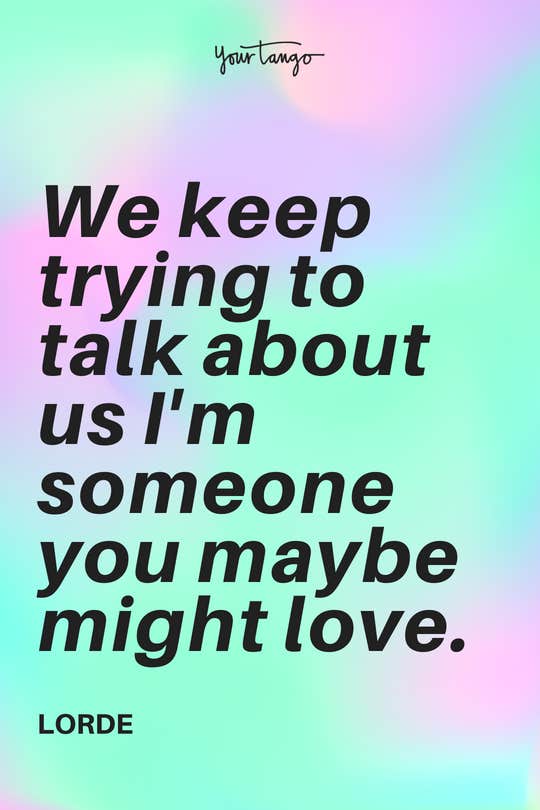 "We keep trying to talk about us I'm someone you maybe might love." -Lorde