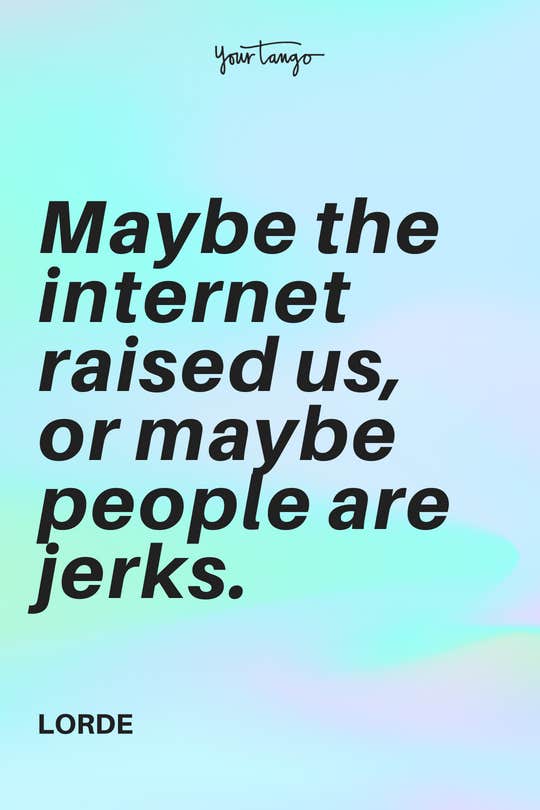 “Maybe the internet raised us, or maybe people are jerks.” -Lorde