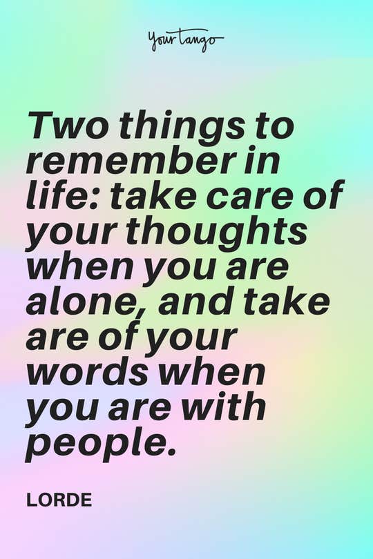 "Two things to remember in life: take care of your thoughts when you are alone, and take are of your words when you are with people." -Lorde