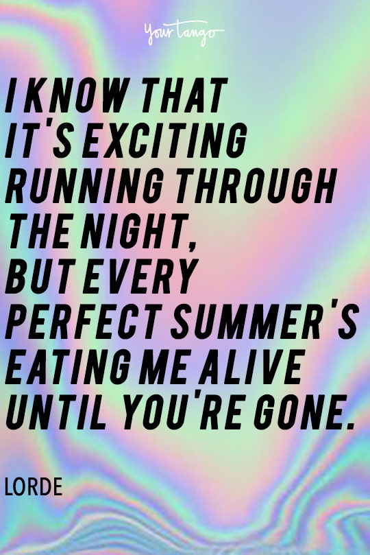 "I know that it's exciting running through the night, but every perfect summer's eating me alive until you're gone" -Lorde