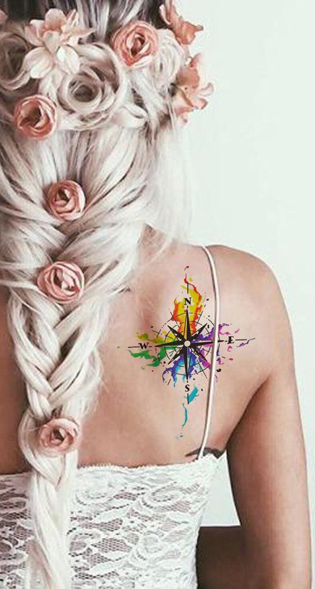 This black compass with watercolor background is a fun one to put on your upper back to “lead you where you need to go” this summer.