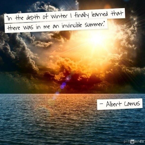 "In the depth of Winter I finally learned that there was in me an invinicible summer." -Albert Camus