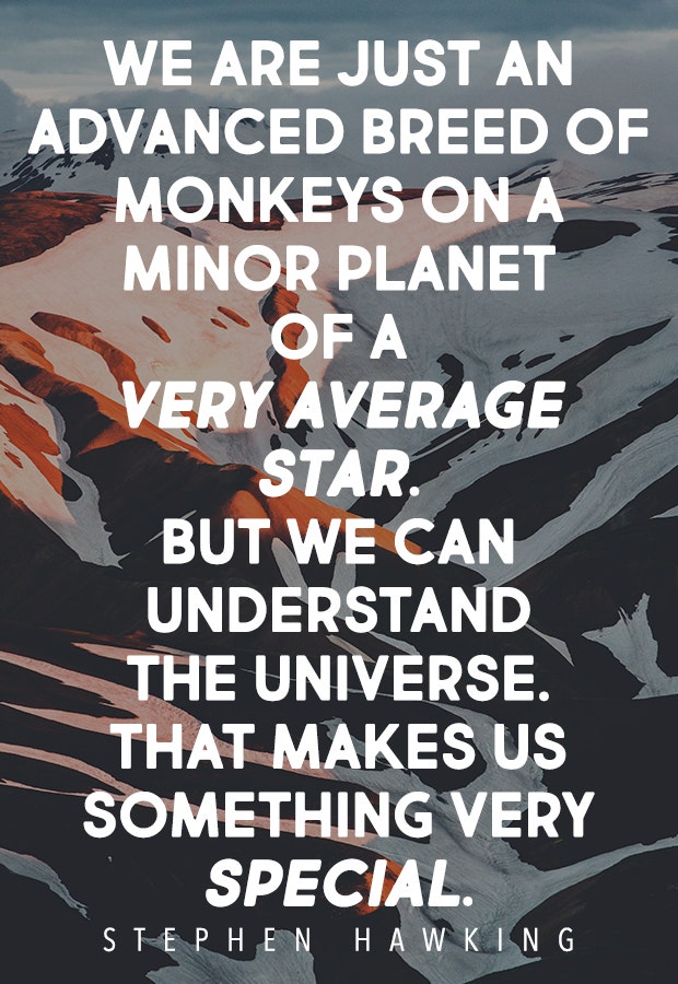 "We are just an advanced breed of monkeys on a minor planet of a very average star. But we can understand the Universe. That makes us something very special."— Stephen Hawking