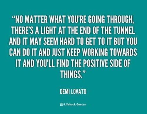 "No matter what you're going through, there's a light at the end of the tunnel. And it may seem hard to get to it, but you can do it. And just keep working towards it and you'll find the positive side of things."