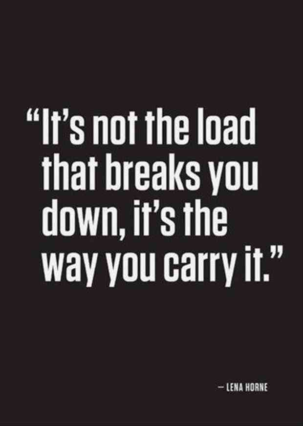 "It's not the load that breaks you down, it's the way you carry it." — Lena Horne