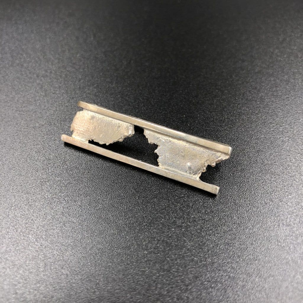 Add a little sophistication and a touch of edge to your business and formal attire with this sterling silver tie bar. Crafted in San Diego, CA by Seth Papac.
