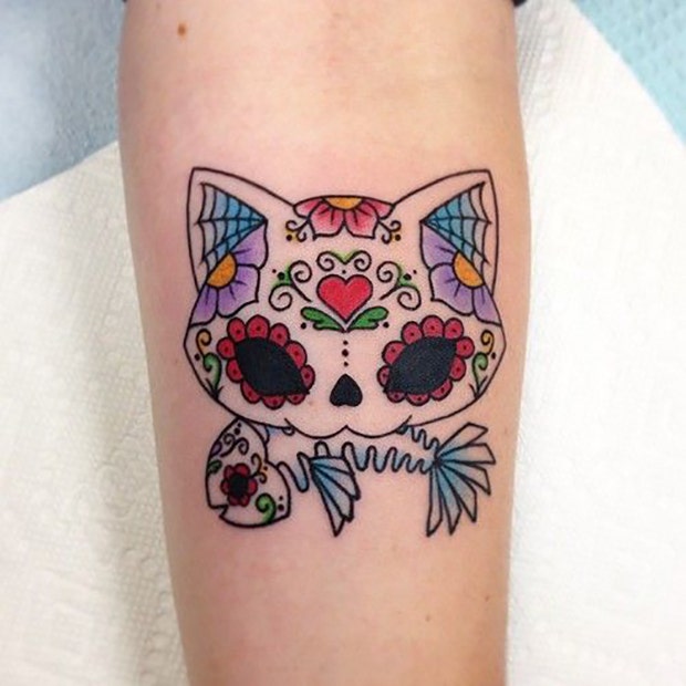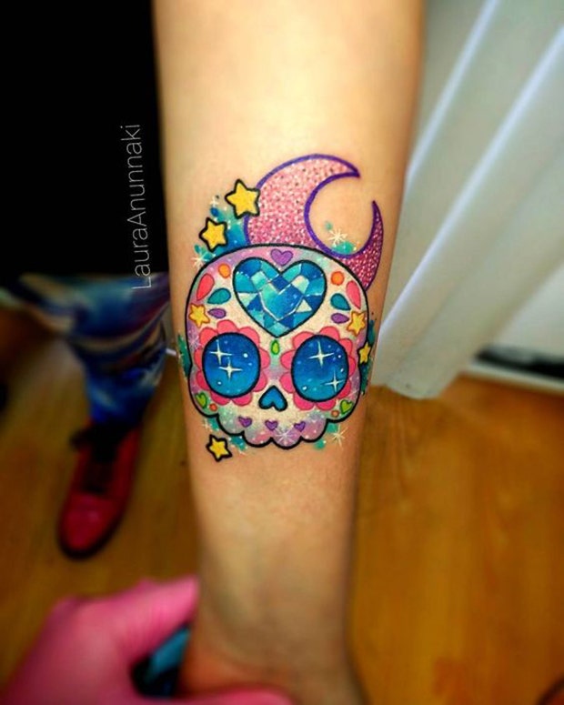 10. Sugar skull tattoos don't need to be dark; they can also be cute, colorful or sparkly (or all three).