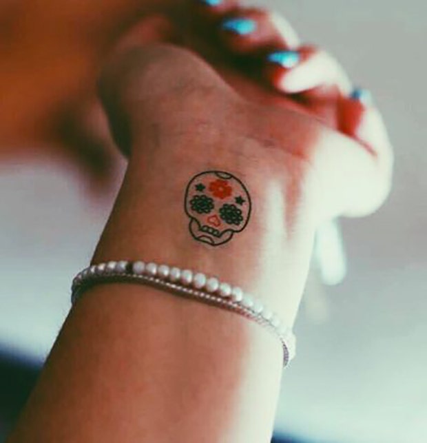 While these sugar skull tattoos are small and minimalist, they are a great way to remember someone you both love.