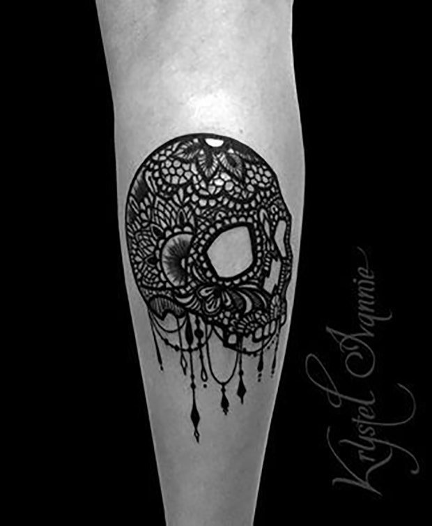 30. Give the sugar skull tattoo class by making it look like black lace.