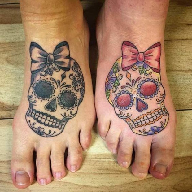 20. A sugar skull tattoo pairing for you and your most-committed friend.