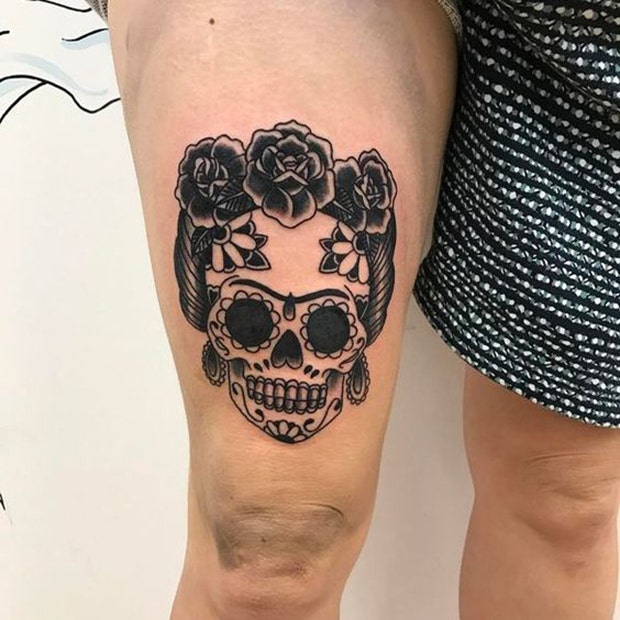 17. A sugar skull tattoo fits nicely onto a shoulder.