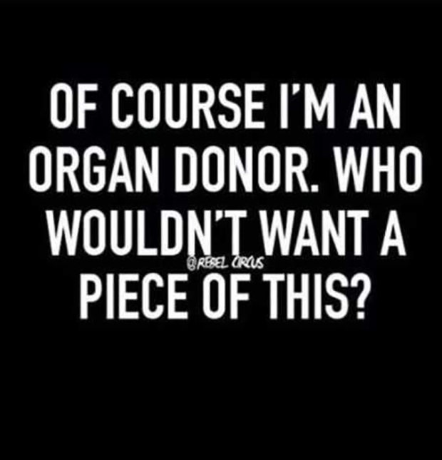 "Of course I'm an organ donor. Who wouldn't want a piece of this?"— unknown