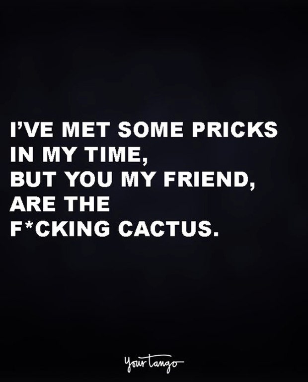 "I've met some pricks in my time, but you my friend, are the f-cking cactus." — unknown