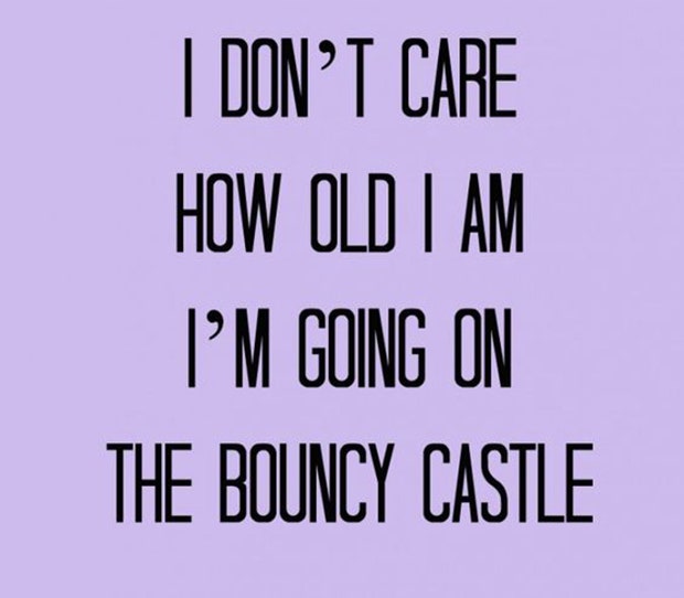 "I don't care how old I am, I'm going on the bouncy castle." — unknown