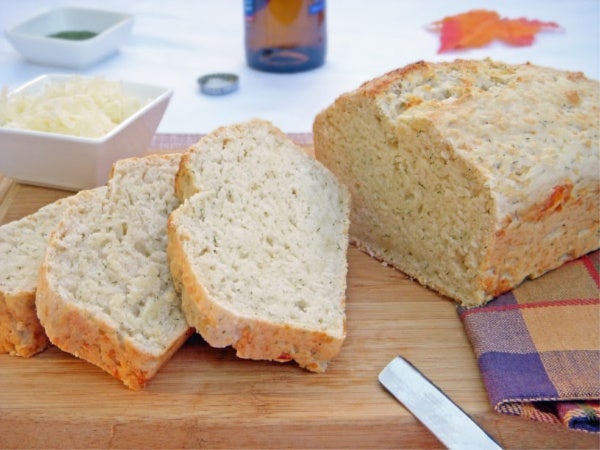 - In a large bowl, combine flour, cheese, sugar, baking powder, dill weed, and salt.
