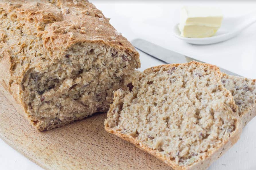 - In a medium-sized bowl, whisk together the flours, xanthan gum, baking soda, salt, and psyllium husks, and set aside.