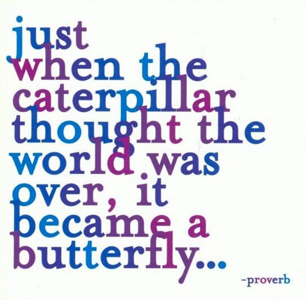 "Just when the caterpillar thought the world was over, it became a butterfly..." —Unknown