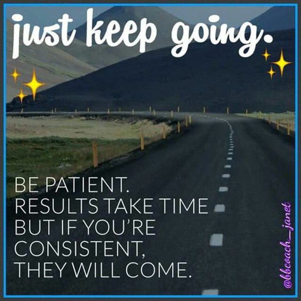 "Just keep going. Be patient. Results take time, but if you're consistent they will come."—Unknown