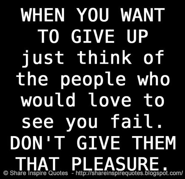"When you want to give up just think of the people who would love to see you fail. Don't give them that pleasure."—Unknown
