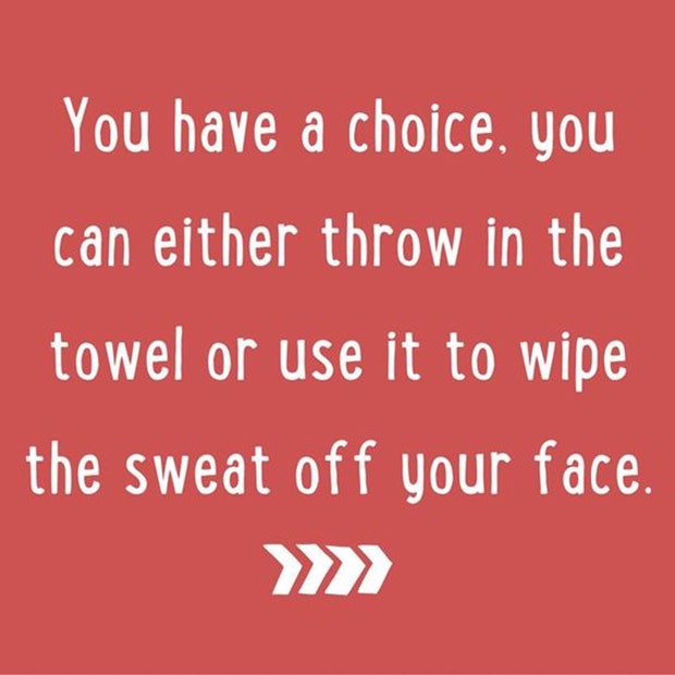 "You have a choice, you can either throw in the the towel or use it to wipe the sweat off your face."—Unknown