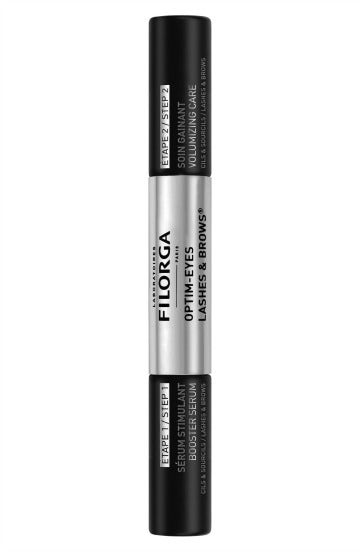 A double formula featuring a booster serum and volumizing care for your lashes and brows, it features a Kera-Extend CX complexion combined with high-dose NCTF, which works to make your lashes and brows appear longer. And the Kera-Maintain CX complex protects them from breaking.