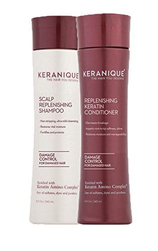 Keranique Scalp Replenishing Shampoo and Replenishing Keratin Conditioner Set is designed to protect both the cuticle and the fiber core, and penetrates and hydrates even the driest hair types to transform coarse, dull and/or damaged hair into soft, smooth fiber. This is a nutrient-rich, sulfate-free, paraben-free formula which gently cleanses the hair and scalp.