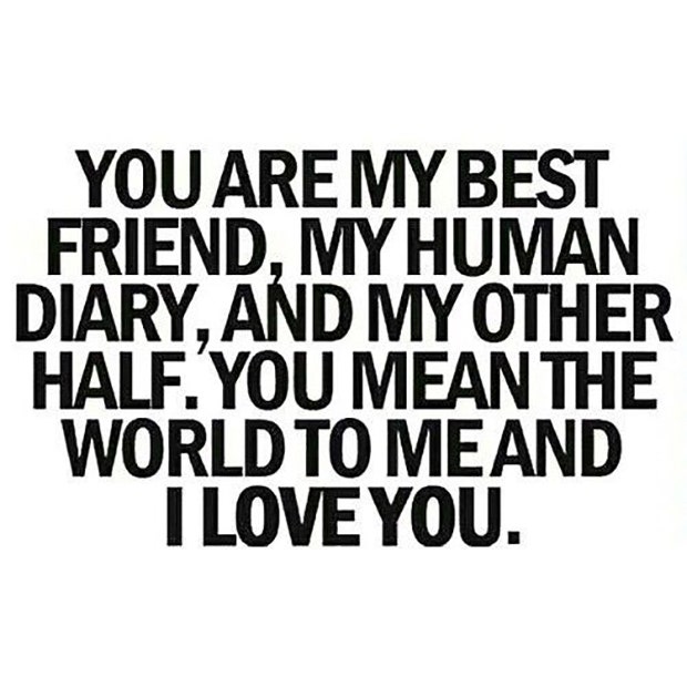 You are my best friend, my human diary, and my other half. You mean the world to me and I love you. — Unknown