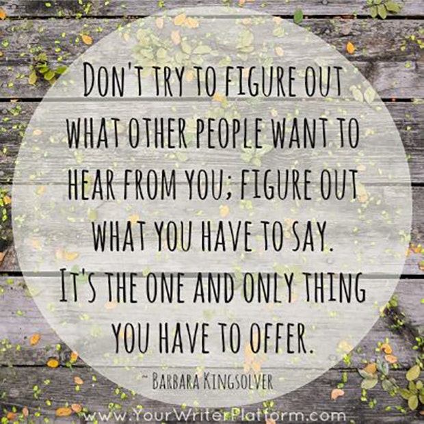 "Don't try to figure out what other people want to hear from you, figure out what you have to say. It's the one and only thing you have to offer."— Barbara Kingsolver