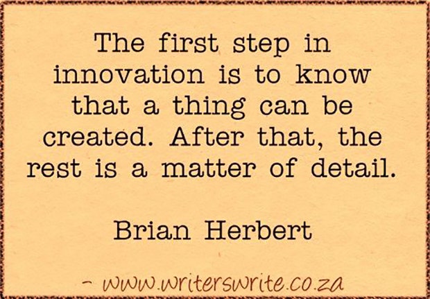 "The first thing in innovation is to know that a thing can be created. After that, the rest is a matter of detail." — Brian Herbert