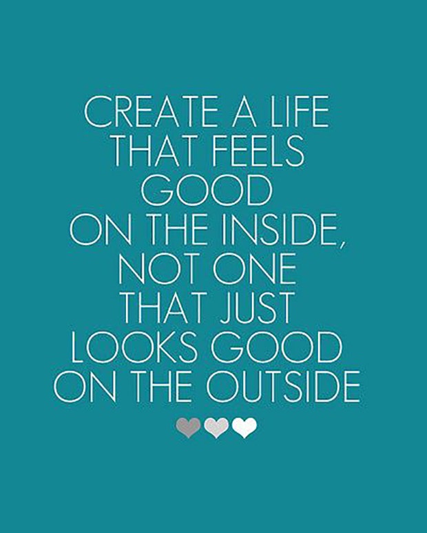 "Create a life that feels good on the inside, not one that just looks good on the outside." — Unknown
