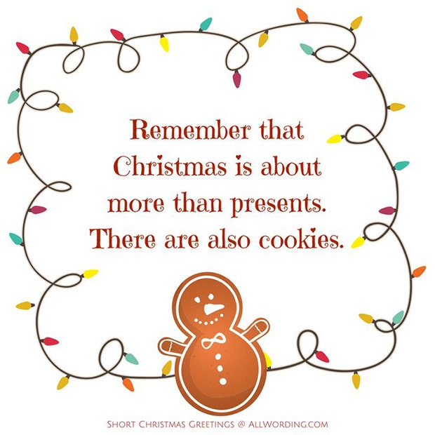 "Remember that Christmas is about more than presents. There are also cookies." — Unknown
