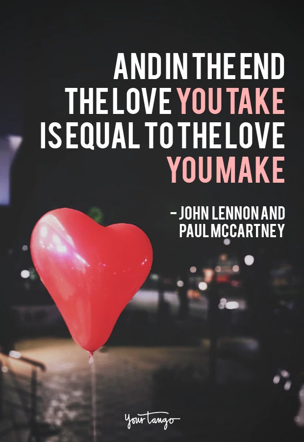 "And in the end, the love you take is equal to the love you make." — John Lennon and Paul McCartney