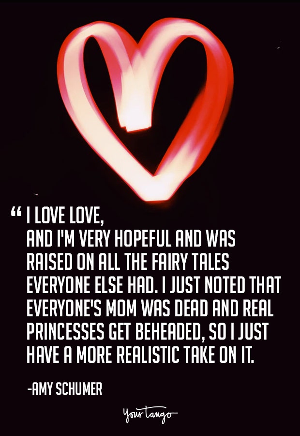 “I love love, and I'm very hopeful and was raised on all the fairy tales everyone else had. I just noted that everyone's mom was dead and real princesses get beheaded, so I just have a more realistic take on it." — Amy Schumer