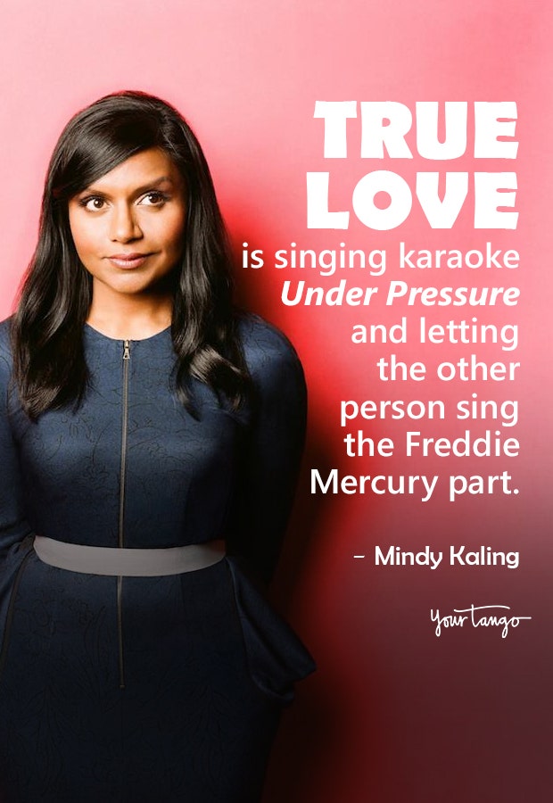 "True love is singing karaoke 'Under Pressure' and letting the other person sing the Freddie Mercury part," — Mindy Kaling