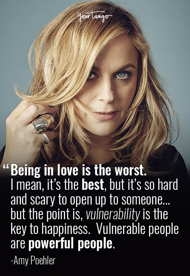 "Being in love is the worst. I mean it’s the best, but it's so hard and scary to open your heart to someone. … But the point is, vulnerability is the key to happiness. Vulnerable people are powerful people." — Amy Poehler