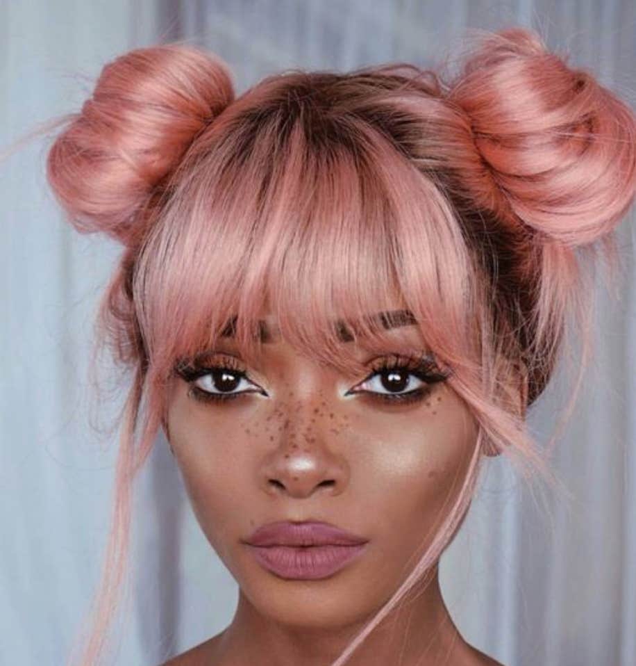 Long hair and she doesn't care! This rose-colored hair cured out acne, and solved world hunger. Talk about goals! Be sure to use some color safe shampoo like this Shea Moisture shampoo to keep that color alive and healthy.