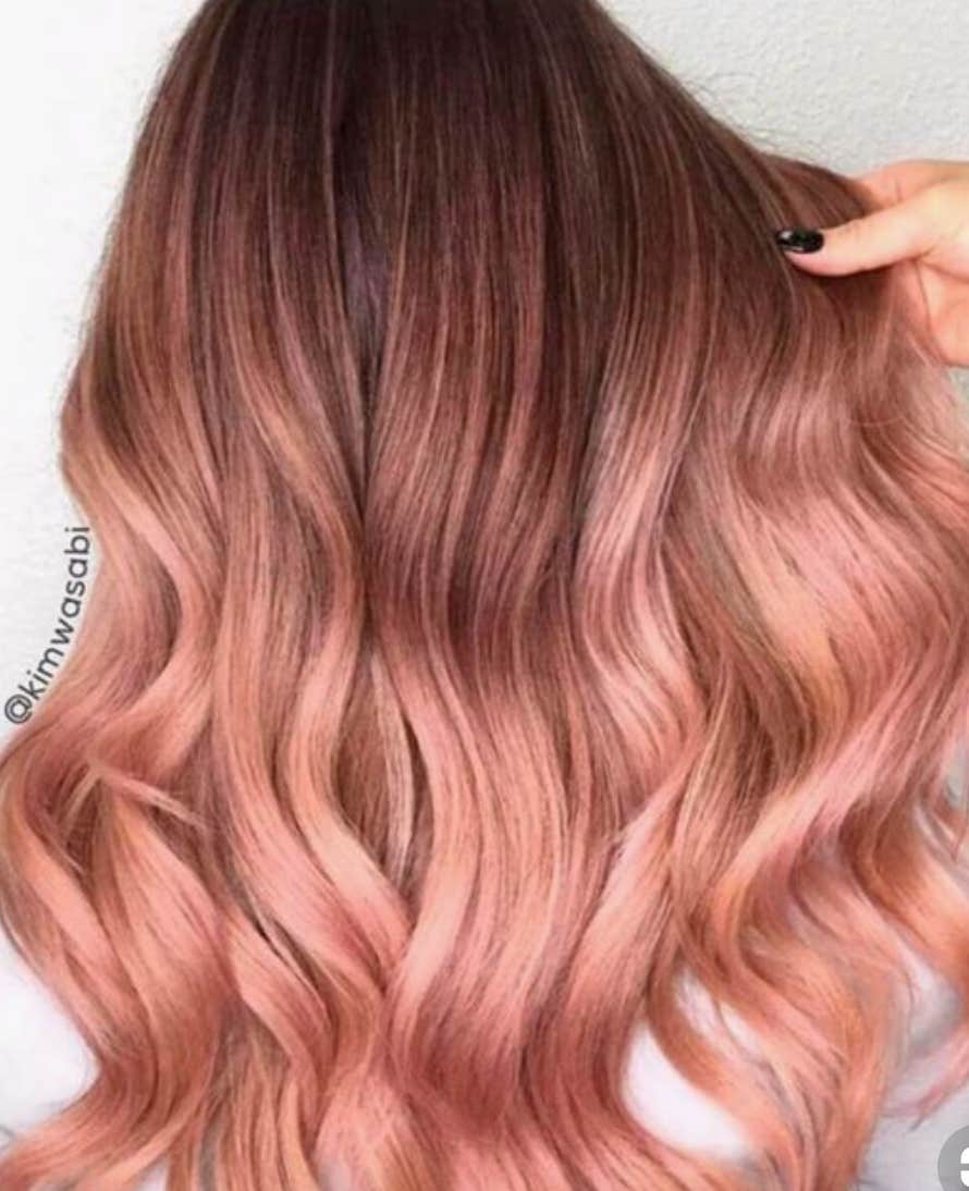 This rose color almost brings out more burgundy tones, but we are here for it. If your hair is on the darker end and you're wanting to add some rose tones this may be the perfect example.