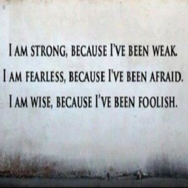 "I am strong, because I've been weak. I am fearless, because I've been afraid. I am wise, because I've been foolish."— Unknown