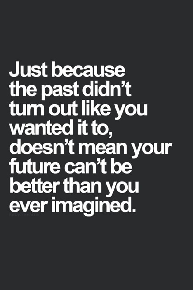 "Just because the past didn't turn out like you wanted it to, doesn't mean your future can't be better than you ever imagined."— Unknown