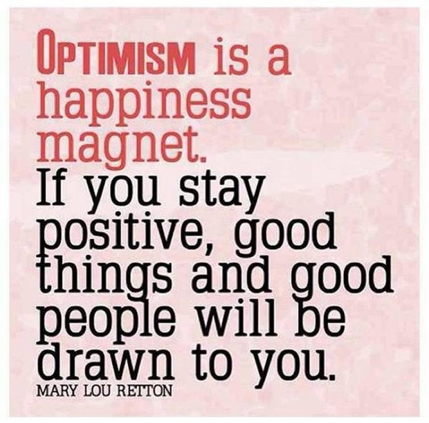 "Optimism is a happiness magnet. If you stay positive, good things and good people will be drawn to you."— Mary Lou Retton
