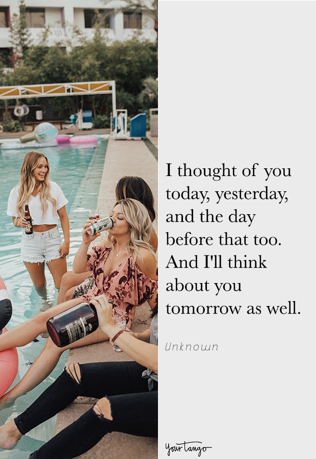 "I thought of you today, yesterday, and the day before that too. And I'll think about you tomorrow as well."— Unknown