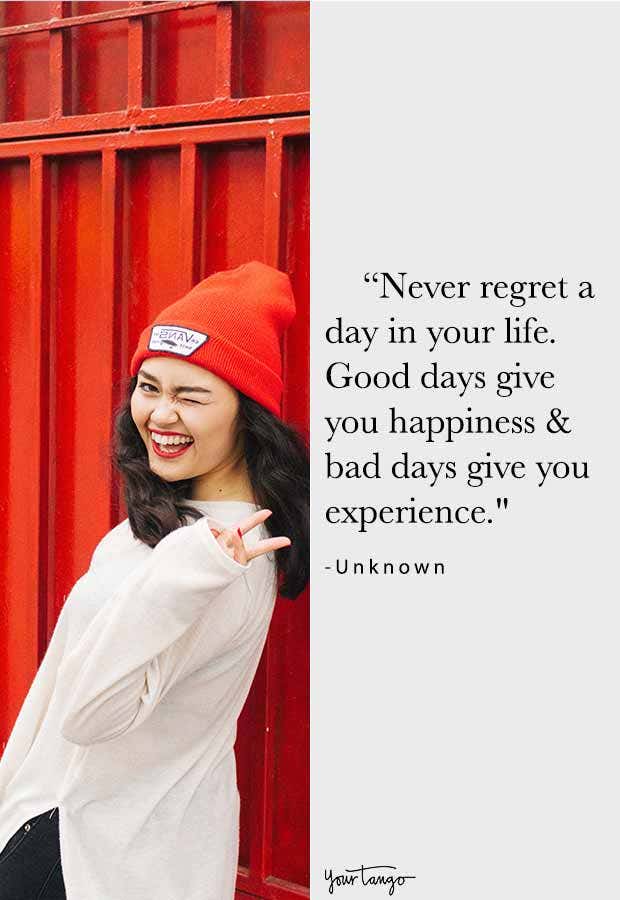 "Never regret a day in your life. Good days give you happiness & bad days give you experience." — Unknown