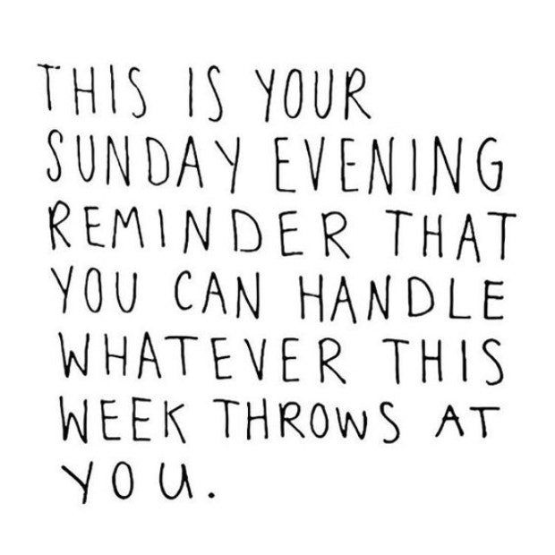 "This is your Sunday evening reminder that you can handle whateer this week throws at you."— Unknown