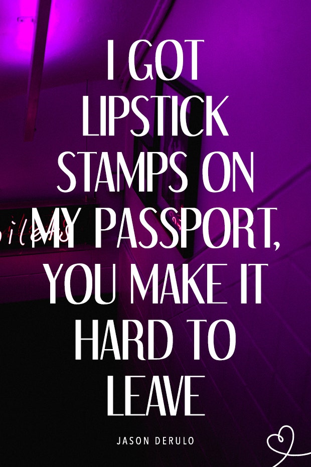 "I got lipstick stamps on my passport, you make it hard to leave,"